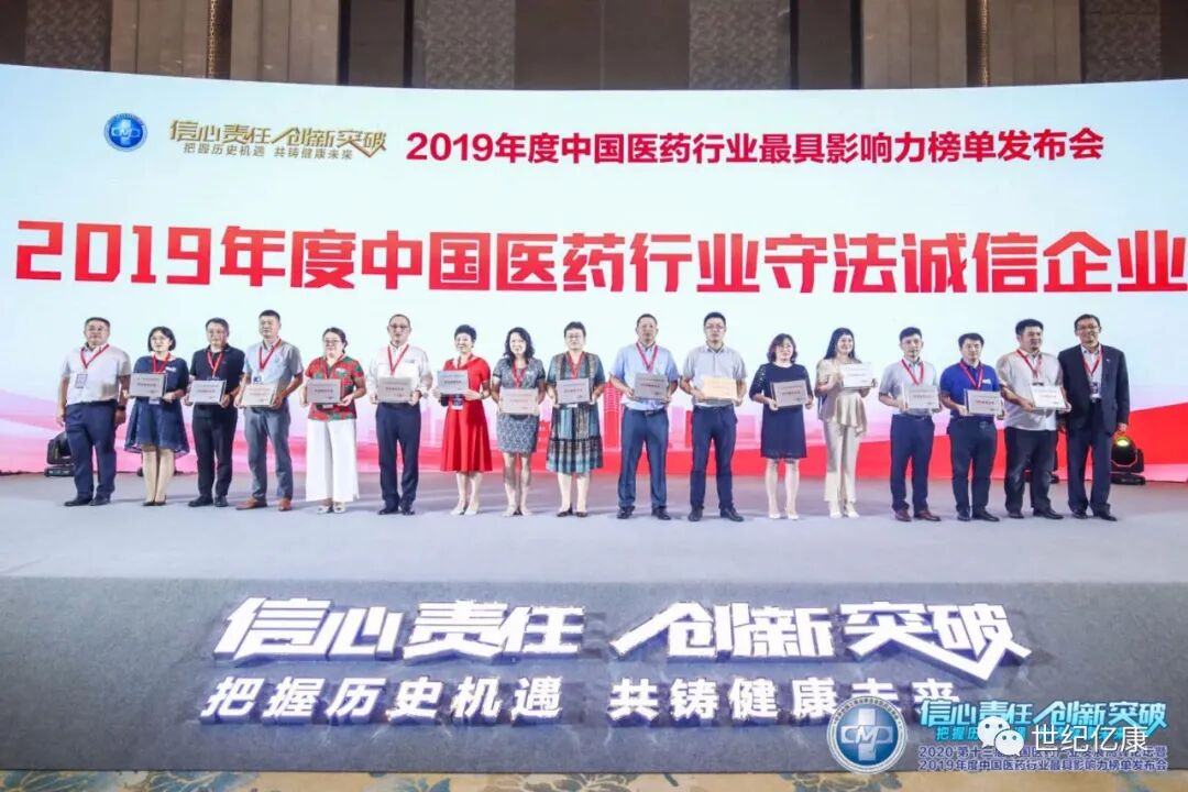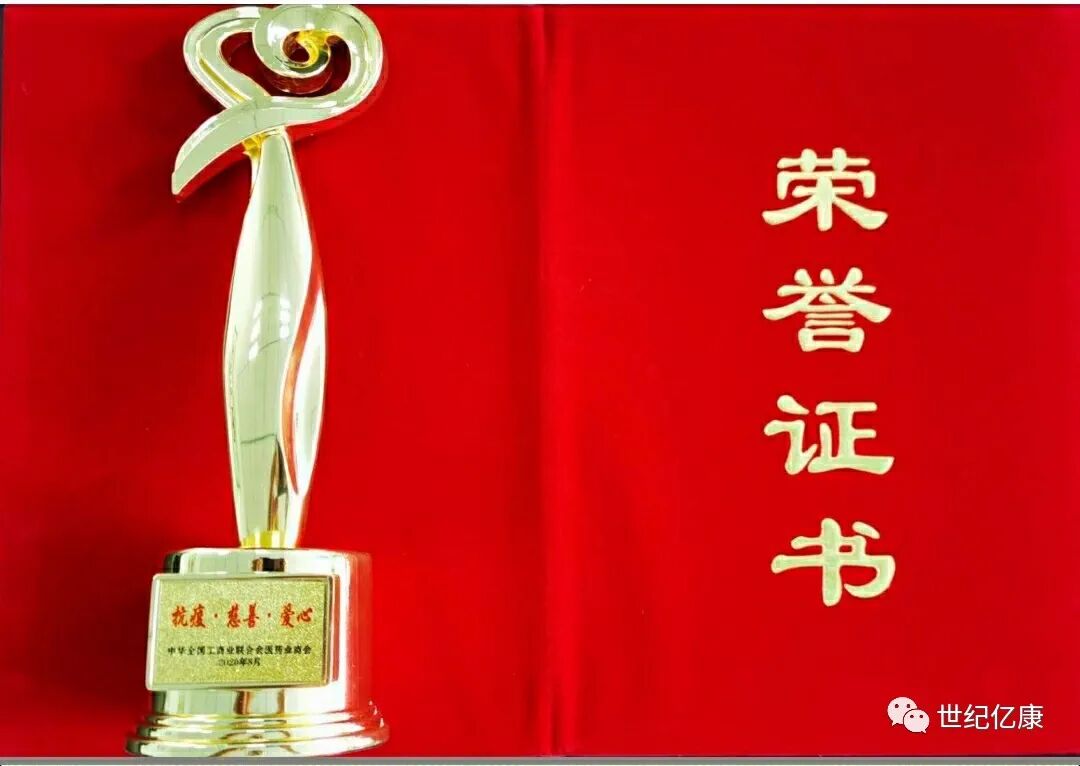 2020年8月,世纪亿康(天津)医疗科技发展有限公司,在“中国医药行业最具影响力榜单发布会”2019年度最具影响力榜单评选中,获得“守法诚信企业”和“抗疫慈善爱心”两项荣誉。